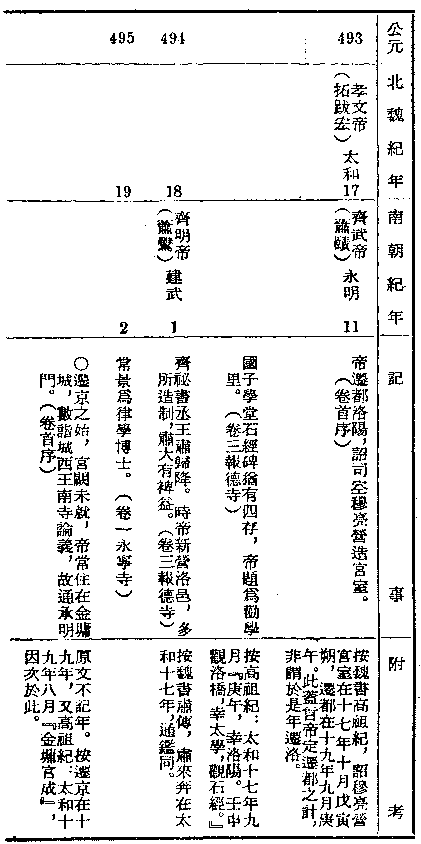 (5)本表年次起訖,斷自拓跋宏遷洛之年(太和十七年)至楊衒之重覽洛陽撰記之時(武定五年)。