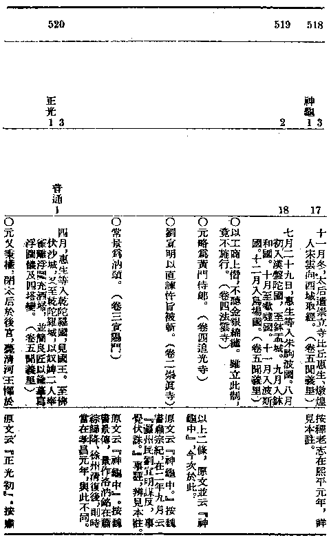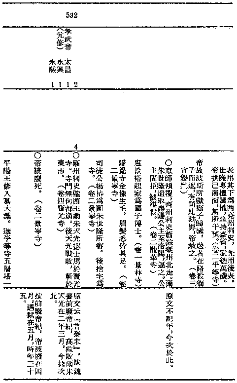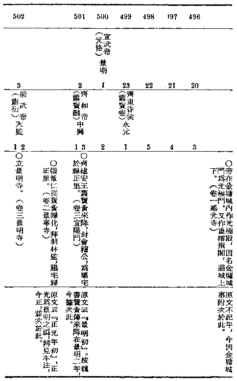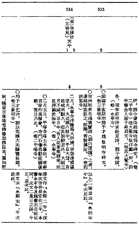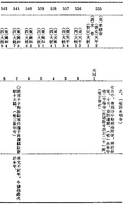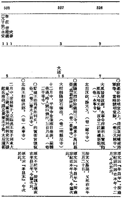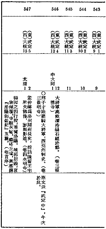 (4)本表記事遵從原書體例以北魏為主,魏分東西後,又以東魏為主。紀年亦如之,並記南朝及西魏年次,以供參考。