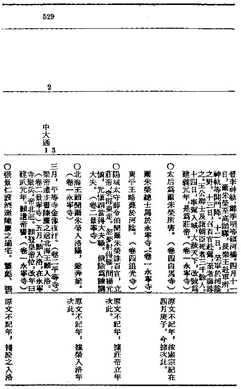(乙)無絕對年月記明,只稱某年「初」、「中」或「末」者,可以考知的,則排次于考知之年月下;不可考知的,則次於相當的年數下。此類各條皆以一小圈○冠首標識之。