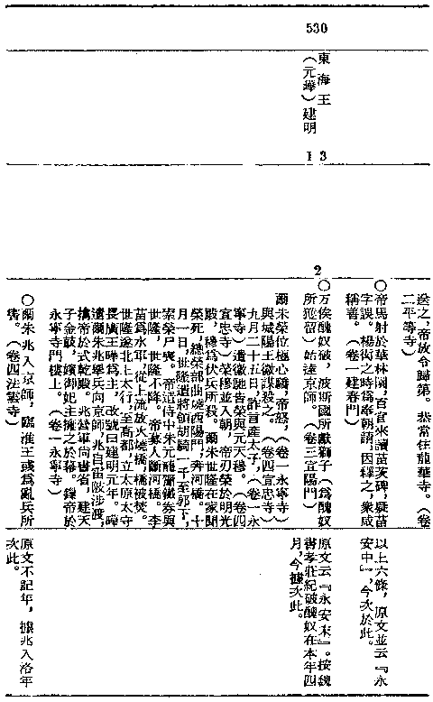 (丙)年月不記明,而有他事或他書可資參考者,則就他事或他書所記年月排次之。此類各條皆低一格,並以一小圈○冠首標識之。