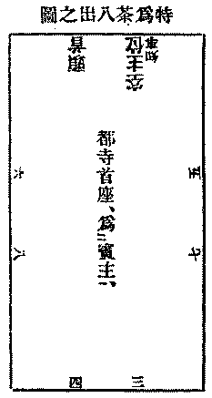 敕修清規嗣法師忌云。如有三五人西堂則分作兩座。第一座西堂喫湯。住持行禮。第二座兩序喫湯。侍者行禮。
