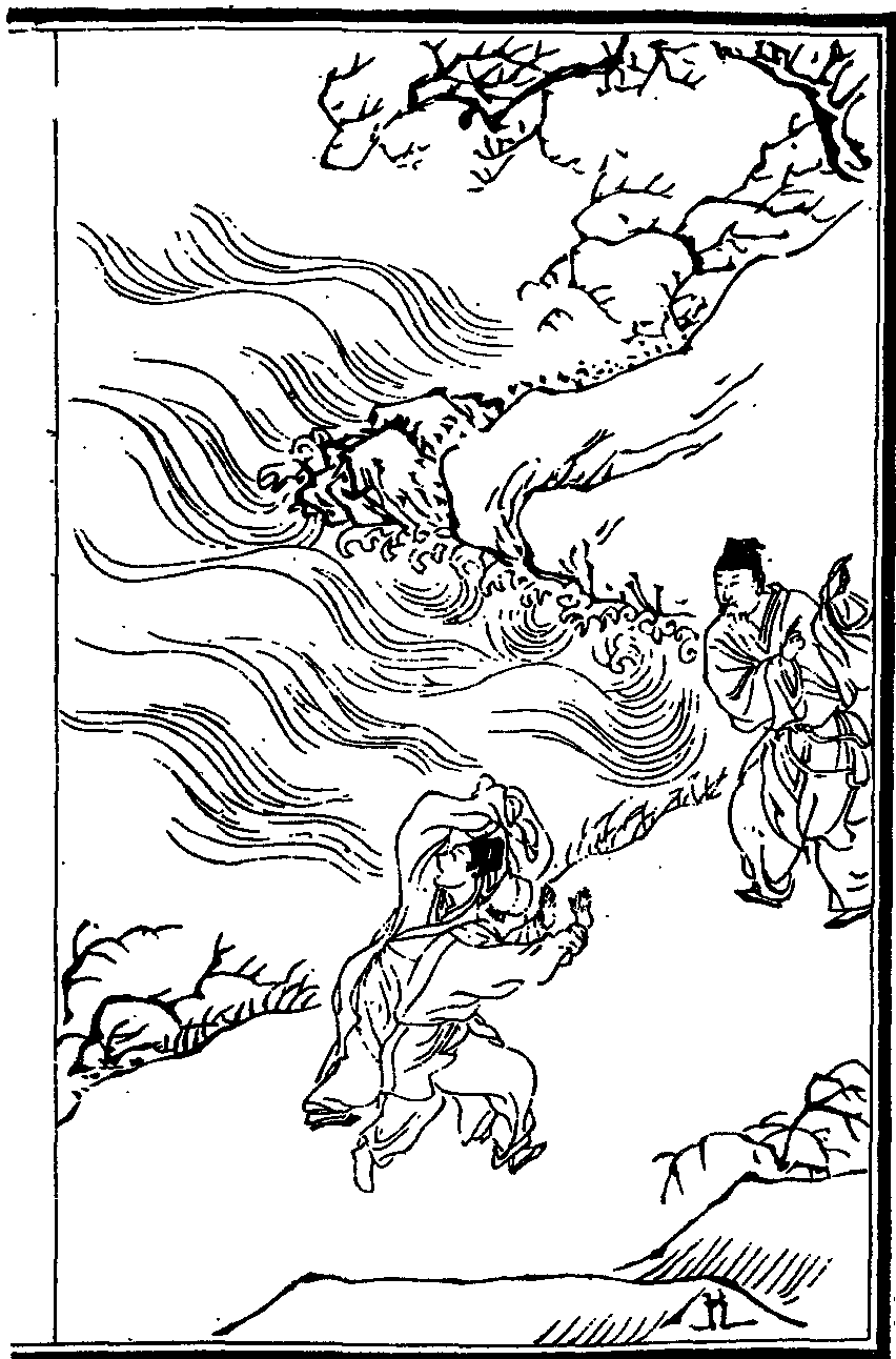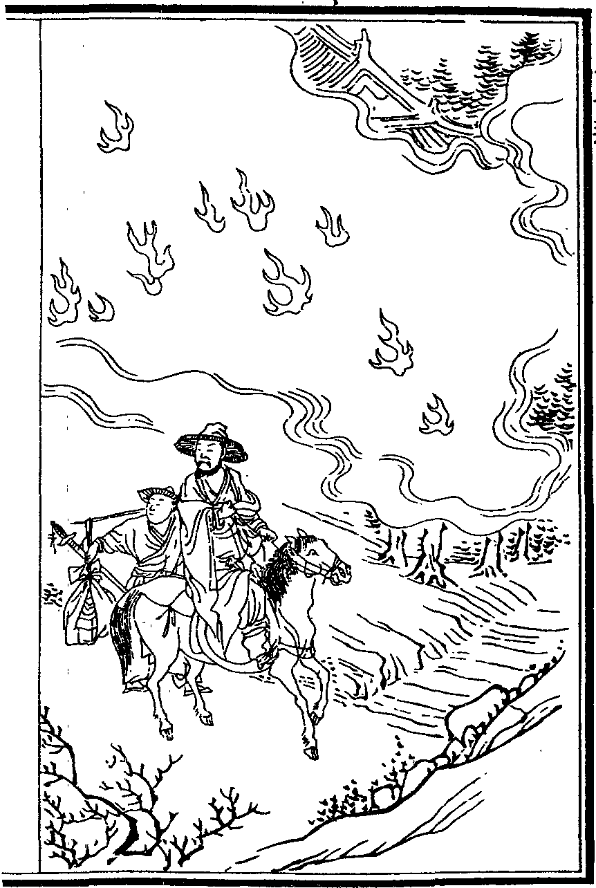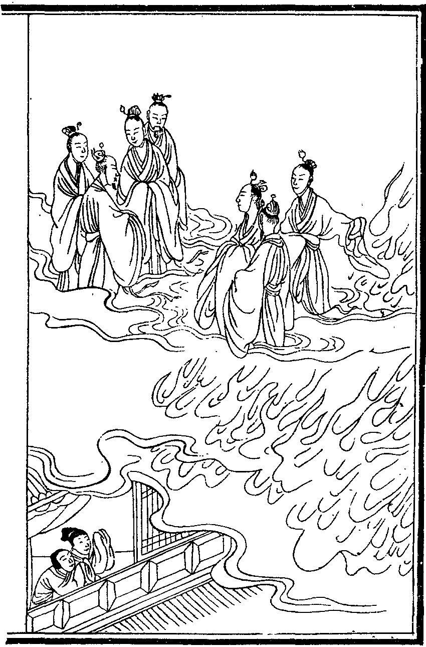 常熟縣奚浦錢氏大族也正德丙寅其族連居數房皆被火凡三日煨燼殆盡中有小樓三楹獨存乃所謂小四房者姑婦二人寡居同處樓中方火熾時煙焰四迫二婦窘怖無措以平日素持斗齋叩頭誦北斗經須臾見朱衣者七人立檐下舉袖一麾火光應時而散七人者忽不見姑婦拜起則四面絕無一椽矣