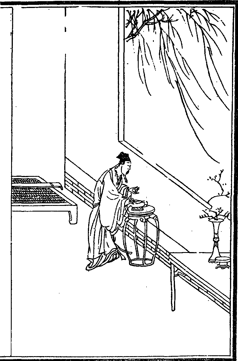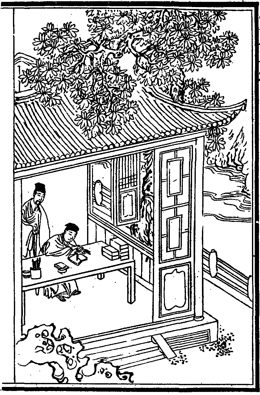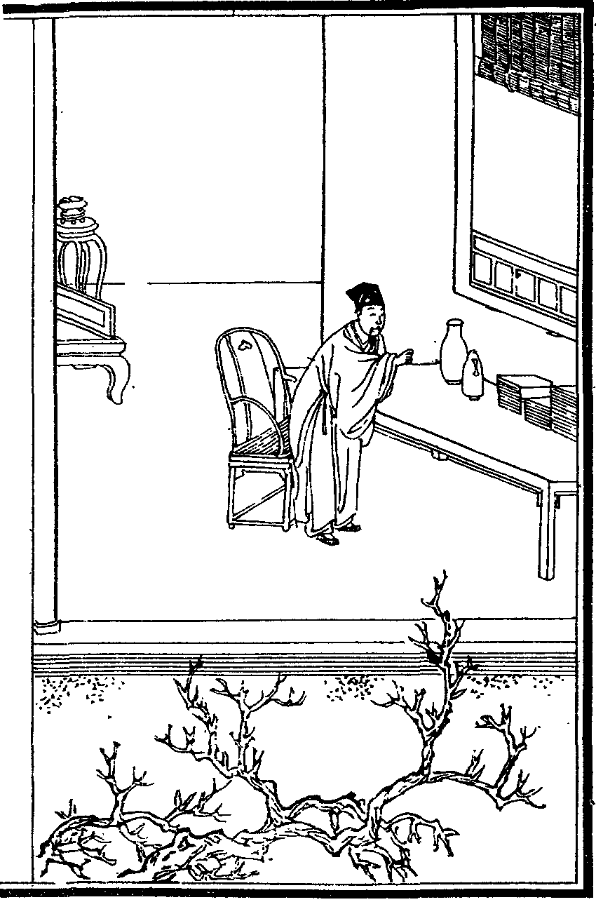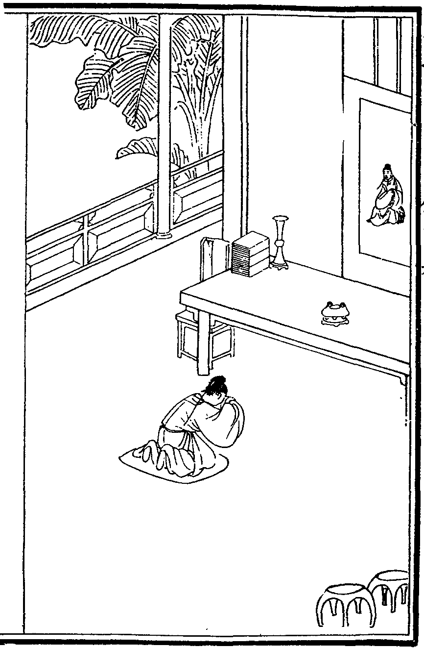 張九成字子韶八歲能默誦六經十四遊郡庠常閉閣終日鄰舍生從穴隙窺之則儼然斂膝危坐若對神明然後舉進士第一為名臣大儒嘗曰余謫居嶺南居無與遊自憂過之不聞學之不進也乃於書室中置夫子顏子像適有晉淵明及近代諸鉅公畫像乃環列夫子左右晨夕瞻敬心志肅然其受益良多有一毫愧心其見諸人也如市朝之撻矣