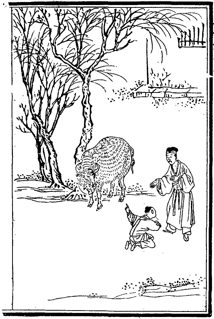 廣陵馬世澤子容喜食黃牛所殺不一毋朱氏止之容戲牛曰汝拜我饒汝牛果跪容曰畜也何曉人意仍殺之次日容為雷擊批一牛字於背一鄉自此俱不食牛肉