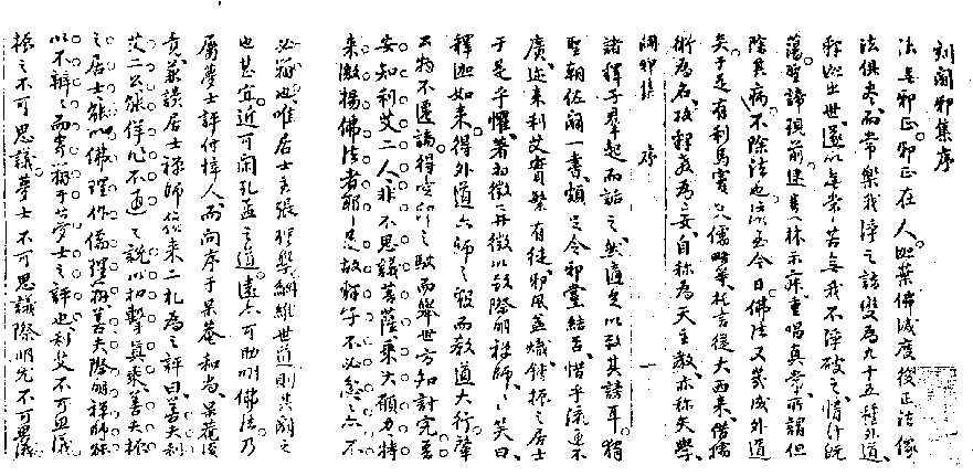 J23nB120_p0053a03憶吾兩人,生同一日,學同一師,幼同一志。不謂尊者J23nB120_p0053a04至廿四歲,逃儒入禪。二十年來,所趨各別,音問遂疏。J23nB120_p0053a05茲者病臥湖濱,忽聞天主邪說。借彼矛,攻彼盾,略為J23nB120_p0053a06《初徵》。知尊者久事禪學,必有破敵餘才。且彼既專攻J23nB120_p0053a07佛教,尊者似亦不容默默。拙稿呈政,惟進而教之。
