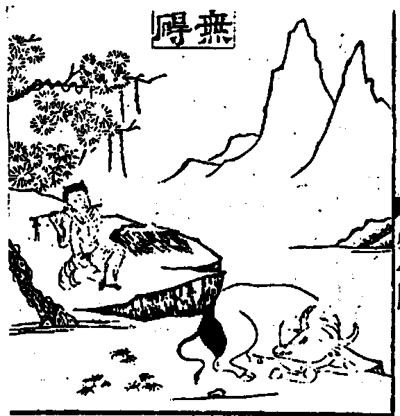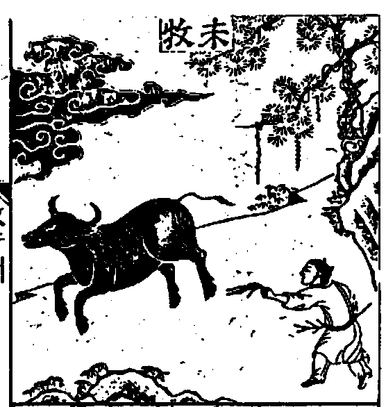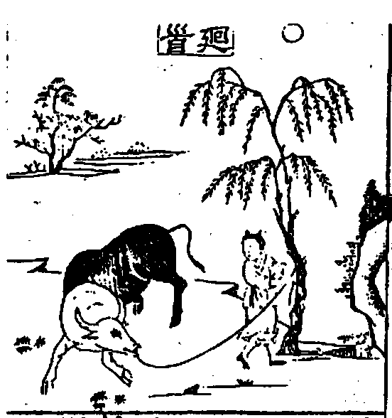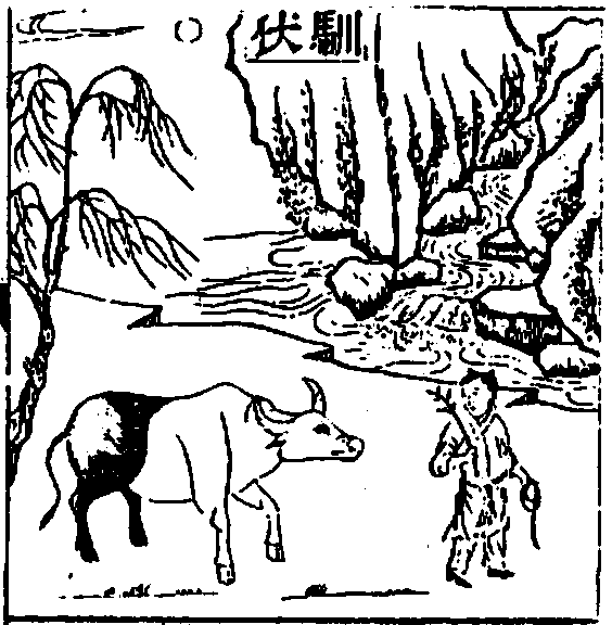 J23nB128_p0354a01牛兒有腳自驅馳,堪笑盲兒步步隨。泥水溪J23nB128_p0354a02深渾不染,牽他入草淂毋疲。