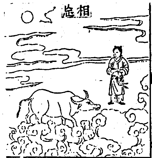 J23nB128_p0348c22杳杳人牛不見蹤,一團新月照秋空。個中若J23nB128_p0348c23問還源旨,風落岩花點翠叢。