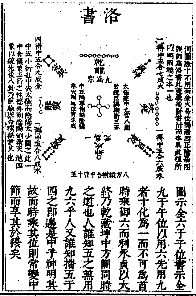 J34nB311_p0787c02河圖、洛書,各具先天後天體用,互相參兩,錯綜而成J34nB311_p0787c03太極之性德,即人心中皆具太極,陰陽五行,互相生J34nB311_p0787c04成,秩序變化,本性天然如是也。如為君為師者,必須J34nB311_p0787c05于未發之前省察,一念纔動,皆當互具五德而不偏J34nB311_p0787c06陷,則能致中和而參贊位育,使天下古今皆得成此J34nB311_p0787c07性命之正矣。