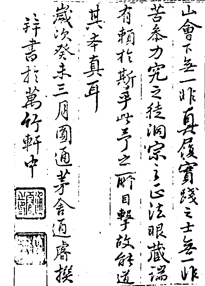 J39nB466_p0833b08如來說法,廣大精微,悉具平實。六祖J39nB466_p0833b09已還,單刀疋馬,直度劍關,大憝既翦,J39nB466_p0833b10始布腹心。吾汾,陶唐故地,洙泗遺澤,J39nB466_p0833b11世遠人亡,經殘教弛,危微宗旨,克復J39nB466_p0833b12法門,荒蕪閉塞,柏道人隻履南來,卓J39nB466_p0833b13錫龍麓,鄙予不佞,嘗與升堂邂逅,入J39nB466_p0833b14室盤桓。吾儒大義,腳根地步,視老宿J39nB466_p0833b15經師,反較蹠實,乃知悟有真悟,證有J39nB466_p0833b16真證,焉可誣也?癸亥秋冬之交,予自J39nB466_p0833b17朔方旋里,道人延致方丈,同榻者累J39nB466_p0833b18月,時聞領略,私幸口業不墮地,眼光J39nB466_p0833c01可存。人間大要,威儀肅而不繁,督責J39nB466_p0833c02嚴而不苛,本西來不立語言文字大J39nB466_p0833c03意,務使前後際斷,動靜不生。讀其語J39nB466_p0833c04錄,率截路賊、斬草除根手眼,乃知學J39nB466_p0833c05有真學,獨是平易近人,無身分見,並J39nB466_p0833c06無無身分見,與錄中開示及接膝論J39nB466_p0833c07議,又何平實也?