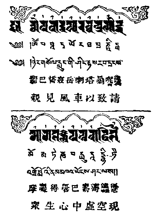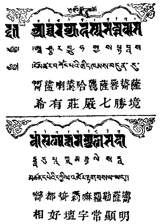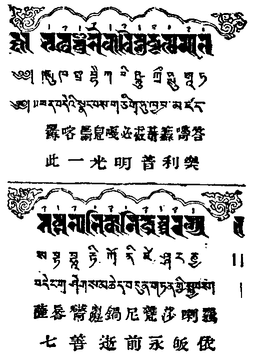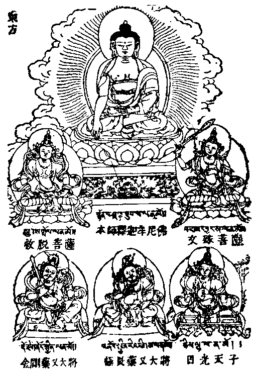 昔我佛在廣嚴城,以梵音聲說藥師七佛本願功德經。傅至唐特,西藏王頌藏剛布譯為番文,以便彼國誦習。迨至國朝,王輩達賴喇嘛製供養儀軌經,體制尊嚴,儀文周密,後人如法修持,內具誠懇、外修節目,能令解脫世間眾苦,速證無上菩提,益莫大焉。顧西番文字華人多以未諳,後見顯親王傅儀賓公工布查布所譯漢本,文字允當與經旨相符,惜其原板無存,其中亦無布壇法儀,與供養佛相方位二事,謹錄珍襲不敢自祕,久欲公之大眾,因力未逮以致稽遲。今逢大檀越宗室祐容齋少宰,見刻此經,指示添繪壇儀各方位佛相,與三十五佛之相,及救度佛母二十一相,並以寫梵天文字數𭛜,尤為莊重。復有檀越理藩院正郎定君,聞此刻經,欣然共濟,既得二大檀越偶善捐資,贊成斯舉,什遂將譯成漢文,諸品經數卷,凡諸佛號,悉書二體字,同付剞劂,裝成卷帙,期傳不朽,奉諸蘭若,分諸信士,凡我同志共步善因。是役也不輕,予之夙願克完,而諸善友之財施即法施也,不可不為誌之,因為之序云。