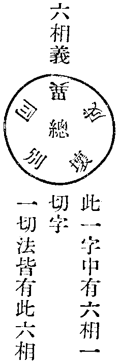 第十二說頌中有四十六行半頌,明重頌前法,如文自具。夫驗經所說,入此初地法,乃至是創始具足凡夫,能發廣大願行、能趣入故,非是由因地前行解而來者,意明設教備明修行滯障節級安危。然發心者一時總頓修,居一時一行之內,非是要從節級次第來修,以總別同異成壞六相法圓融可見。於此六字三對法中,一字有六,且如人類之,餘可准知。如一人身具足是六相,頭身手足眼耳鼻舌等用各別是別相;全是一身一四大是總相;一空無體是名同相;不廢如是同無異性,頭身手足眼耳鼻舌等用有殊,是為異相;頭身手足眼耳鼻舌等共成一身,名為成相;但隨無作緣有,各無自性,無體無相、無生無滅、無成無壞,名為壞相。又一切眾生名為總相,愚智區分名為別相,皆同佛智而有名為同相,隨執業異名為異相,所因作業受報得生名為成相,心無所依業體無生名為壞相。又十方報佛名為總相,眾寶所嚴身土差別名為別相,同一法身理智無二名為同相,智隨行異名為異相,成就眾生名為成相,能所皆無無得無證名為壞相。又以一智慧該收五位名為總相,行解昇進名為別相,同佛根本智名為同相,修差別智名為異相,成大菩提具普賢行名為成相,智體無依用而不作名為壞相。又三世久劫差別名為別相,以智普觀在一剎那名為總相,隨業長短名為異相,情亡見盡長短時無名為同相,智無依住名為壞相,應根與法名為成相。約舉五翻六相同異,自餘一切法准此例知。又明一字中有六相義互為主伴,十玄義亦在此通。一同時具足相應門、二一多相容不同門、三諸法相即自在門,是其義也。