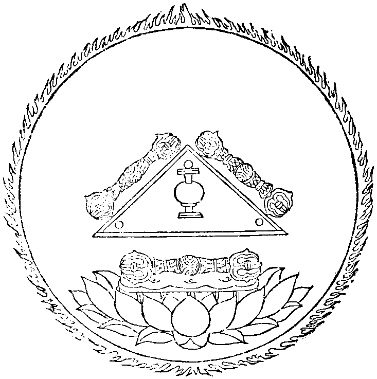 云復次者,由前已說之事有所不盡,更續明之,故云復次也。諦聽者,以此法轉深,祕旨要故,重戒令諦聽也。此中略說五事,謂印、色、尊位及住并三昧。印,謂手印契印也,改為形相也。色,謂本尊形相分段差別置者,謂方、圓、半月、三角之類也。尊位,謂漫荼羅中所住方位各各處所也布置聖者位次。住,謂本尊之像,非直綵畫,而由真言及印等所引故,來至本坐加威而住也,現威驗也。三昧,謂隨上中下分寂、忿、悅等儀相也。請本尊如法,為印及形相,配置尊位,威驗現前,住於三昧所趣所住處為。所住處名為趣,謂三昧趣也。要具明此五緣方。所云五趣者,趣是別別之義。由此五緣差別,故云五也。由具此五故,世及出世間所有漫荼羅皆能解了也。然此五事,乃是古昔諸佛成最正覺,先佛成三菩提也諸佛法也,法界虛空行。法界虛空行者,由體同法界,成如來行故也。如是諸佛謂度無餘界有情本願故,為利樂安樂修真言門諸菩薩,故演說之,故令慇懃諦受也。「金剛手言:如是。世尊!唯然願聞」者,是金剛手等十世界及普賢等十世界大眾,蒙佛告勅,皆同聲白言:「唯然。世尊!願樂欲聞。」故佛更說祕密漫荼羅法也。佛言有正等覺漫荼羅,置祕密中密,無上大悲藏等名,若無量等世出世漫荼羅同者,即是如來最正覺究竟之說也。然此大悲藏生,前已說竟,何故更說?有何差別耶?然前雖說者是為祕密,更有祕中之祕。若不說此法者,即通達前法亦不得成,故為最祕要也。若解此者,一切世間諸漫荼羅悉皆同用之,無所不入也。其作法者,先作四方漫荼羅,其界唯用羯磨金剛智印周匝相連以為其道。唯安一門。其十字中又作十字金剛印,印如前作之,但以十字為異耳。其十字金剛印上作蓮華,仰而半敷,令此十字如花之狀也。其花上又安八葉之花,即如前五佛四菩薩方位也。當以心想而置九點,即是臺及八葉中各想一點也。此點即是大空之證,此成正覺義也。於此八業及中,當作方圓漫荼羅,而畫本尊之像。佛方壇,菩薩圓也。此但是行人自為己作,不令示人。若作法時,自在壇門而坐,自作灌頂等法,然後得作一切法事也。此事尤祕,但心存作之,不可形於翰墨也。又其臺上當想如上十二字真言王,令其字一一分別置於壇上也。更問:連環置耶?以何為次第耶?又云花中安子者,謂畫蓮子,或十或過減無在。