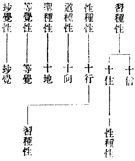 戒疏上八性習二性,若據位分,習種在前,性種在後。若據行論,性習同時,故前後不定。依體起用,先明性種,後明習種。尋用取體,先習後性,與教證二道相似。就位以論,教道在前,證道在後。據行論之,教證同時,前後不定。依體起用,先證後教。尋用取體,先教後證也。