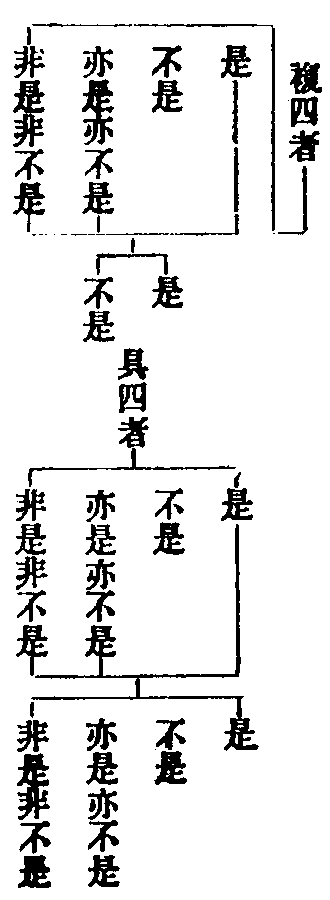 言皆墮斷、常者,即摺疊四句以成二句也。初、三是有,故墮常;二、四是無,故墮斷。此四並是妄想,故須破之。問:佛法皆云因緣和合,何故破共生?答:為定執故,亦須破之。四執破已,四說無過。故中論云:諸法不自生,亦不從他生,不共不無因,是故說無生。