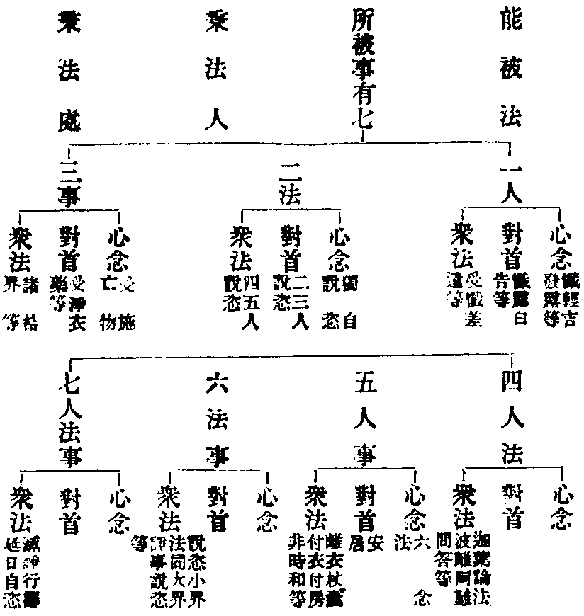 次科初明對法顯相說戒等者等取羯磨水乳無二戒疏云如水合水如乳合乳二物各論可喻和相僧雖下會上別人得名所以眾乃別人所聚別即成眾之緣故雖一人望能成眾故分兼得名且下一句示其總略別分七位如下自明。