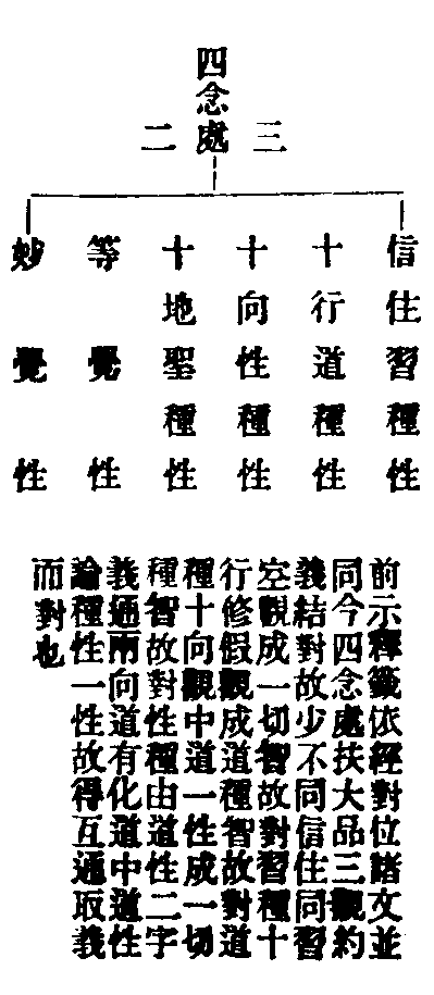 十住乃至十地別名,學者非實,並略不釋,備在集解,須者往尋。習種性者,瓔珞經上卷賢字函明六種性以對別位淨名疏第九亦借別名以顯圓,今家玄籤、四教義、戒疏等並依經列,四念處中少有不次。又地持論略明二種亦名經彌勒造賢字函,如戒疏列六種,後復用二種及對教證前後生報佛法,佛併圖而會伸之。