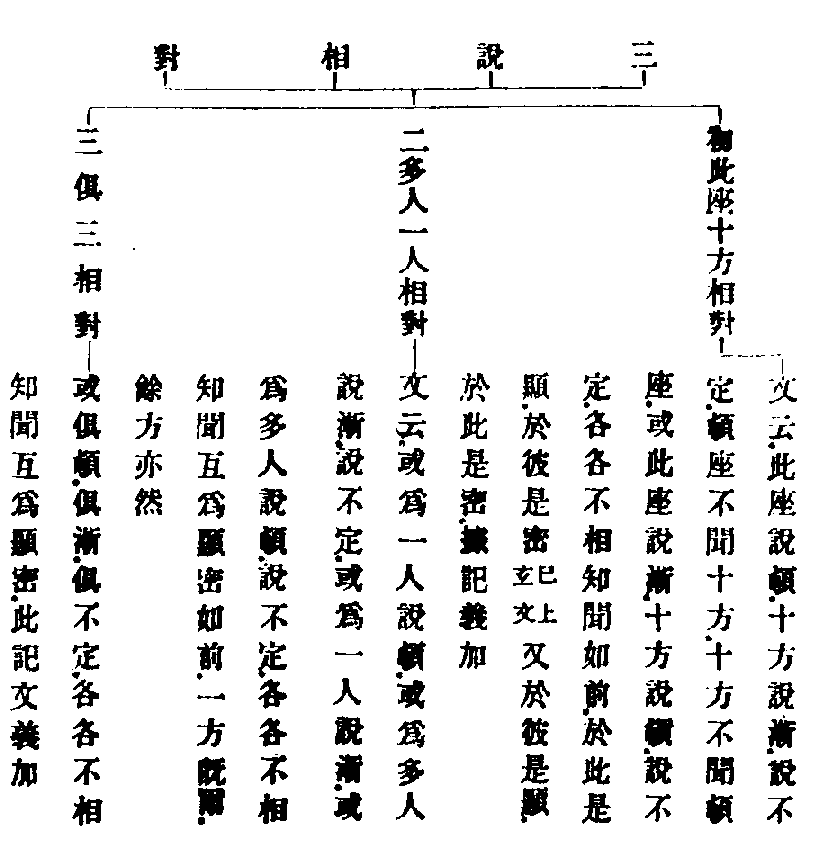 【□註】或為此人說頓等妙玄,先約頓漸三說相對,次約說默相對,各有三義,謂此座十方,多人一人,及俱三相對。