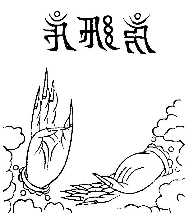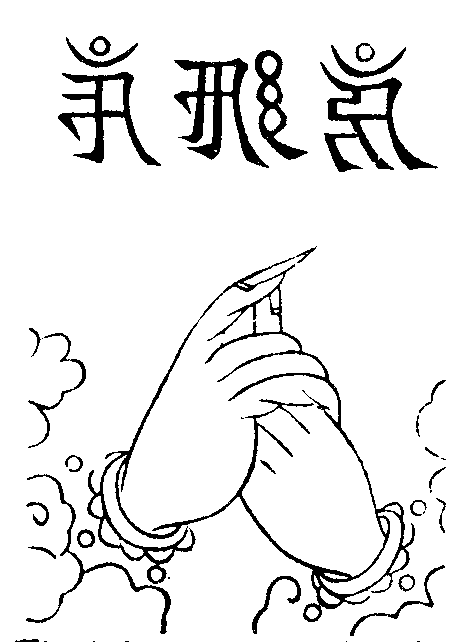二羽金剛拳,進力兩相鈎,主者於此誦真言三遍畢,然後除去五佛冠。