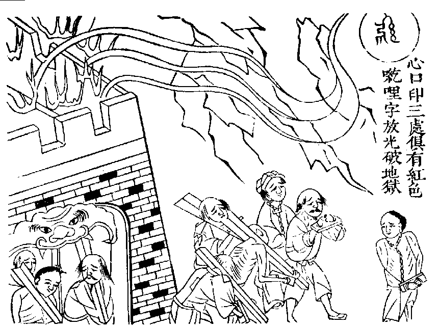 師印呪可知。應想自身增長紅色觀音,一面、二臂、舌上、心間、印上三處,皆有紅色𠶹哩(二合)字,放光紅色,如日初出之光,照觸地獄,悉皆破壞。問云:一處放光,足以破之,何用三乎?答曰:為彼地獄是眾生三業之所造故,故今亦用三業放光以破之也。又問:地獄是眾生別業而成,云何能破?答:雖云別業,同是一心,以智照之,眾生亦無,豈有地獄?由迷一心故,妄造眾惡,惡業成熟,妄成地獄,既墮地獄,妄見受苦。譬如夢中為虎狼獅子所噬,或為賊所縛,或遭王難,受種種苦,及至夢醒,了無所得。何以故?如夢中實無如是事故。今觀地獄及苦,亦復如是。今假以智照力,必破是也。問:地獄既然本空,何須破而救之也?答云:我雖以智照力,知其本空,彼無智照,焉得不苦?故圓覺經云:夢時非無,及至於醒,了無所得。今㧞救之,正欲破此地獄及苦空也。若推原之,彼以惡業因緣而成地獄,則知非本有矣。我今以智照因緣而為之破,豈不破乎?一是禪定,二是手印,三真言,四作觀,五智照。有此五種因緣,何事不辦?豈唯破地獄乎?今世之學者,惟利是求,濫稱闍黎為眾上首,彼是音聲,振鈴擊節,慮恐負於請主之意者多矣,可不慎歟?。