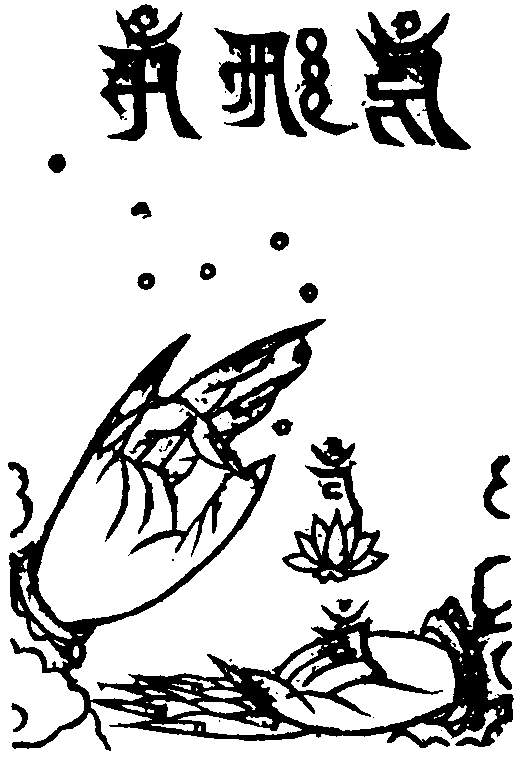 註曰:字種,𠶹哩(二合)字也。此字乃大悲菩薩取證之理,度生之妙門也。放光成蓮花者,乃所進之花也。