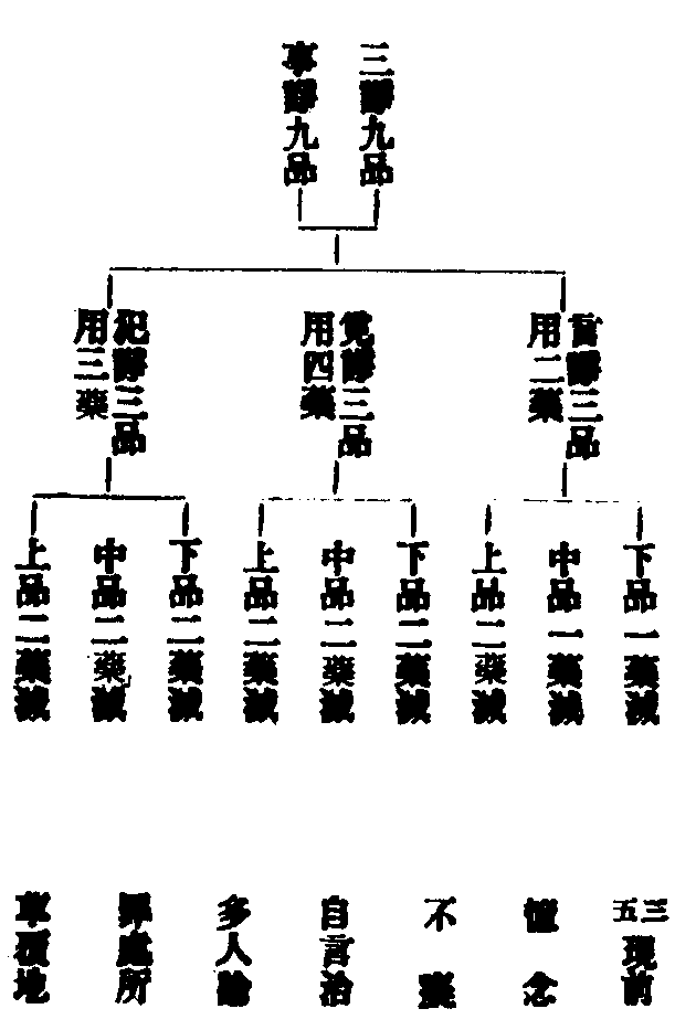 欲界初禪二禪三禪四禪空識無所有非非想各有九品三界分為九地每一地中有九品惑九九成八十一品也。