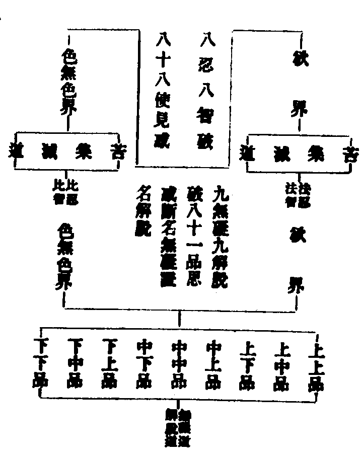 三界五品惑總十五部發智論一見所斷結二集所斷結三滅所斷結四道所斷結五修所斷結各通欲色無色三界。