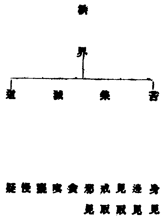 欲界苦諦具十使集滅除身邊戒三道諦唯除身與邊四諦共成三十二色無色界四諦下作句還同欲界中但除嗔使異於前一界但有二十八一界單列二十八二界合則五十六揍前欲界三十二是則總成八十八。
