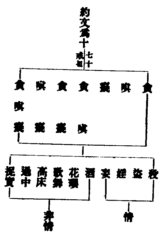 就業非情為八(五十六戒)為十(七十戒) 殺盜婬口婬大婬小妄語綺語兩舌惡口酒。