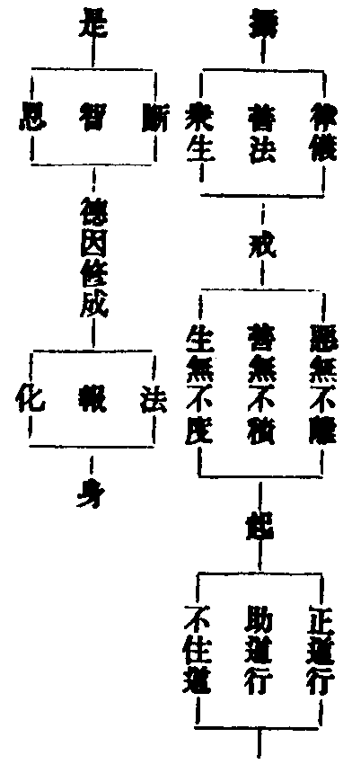 聞夫大覺初成,始結菩薩波羅提木叉,終至雙林入滅,亦教諸比丘,當珍敬尊重波羅提木叉,始終如是。佛在世時,以佛為師,去聖逾遠,以何為師?諸聖所說,以戒為師。奇哉!戒乃登聖之梯行,越苦海之慈舟,緇素等流,凡登戒品,四儀嚴護,三業恒清,習馬勝之威儀,效波離之軌範,動靜禪思,心恒在道,常樂獨間居,不近白衣貴士,衣食隨緣,多得供物,有二棄一,三衣法器,常知止足,分外無求,晝夜專修淨業,一行三昧,終身無怠,惡業氷消,佛境現前,百年報盡,無諸病苦,端坐而逝。