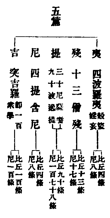 答曰:可懺悔者,偷蘭遮、波夜提、波羅提提舍尼、突吉羅、惡說,是名五罪可懺悔。第六,須羯磨者,僧伽婆尸沙一罪。不可懺者,波羅夷是也。毗尼有二重者:一、波羅夷;二、僧伽婆尸沙。身、口亦如是者,結戒不過身、口、非時糓。