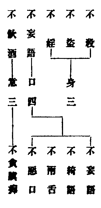 - 五曰不飲酒食肉戒