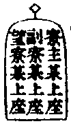 本山辦事禪師, 鄉人道舊禪師, 江湖名勝禪師, 合寮尊眾禪師, 九行書花 素紙不拘。